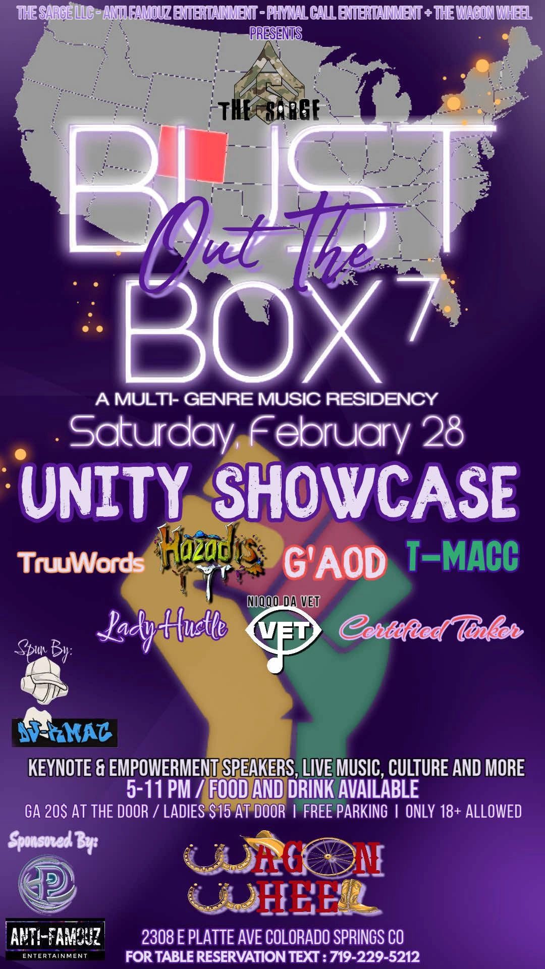 We invite you to our Monthly Bust Out The Box hosted by The Sarge at Wagon Wheel and in partnership with AntiFamouz Entertainment and The RH...